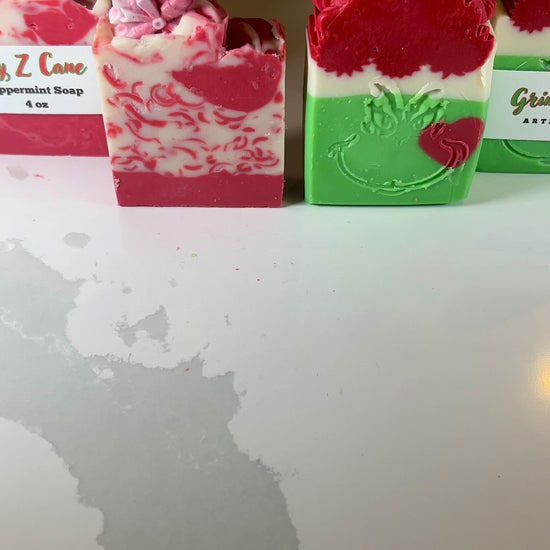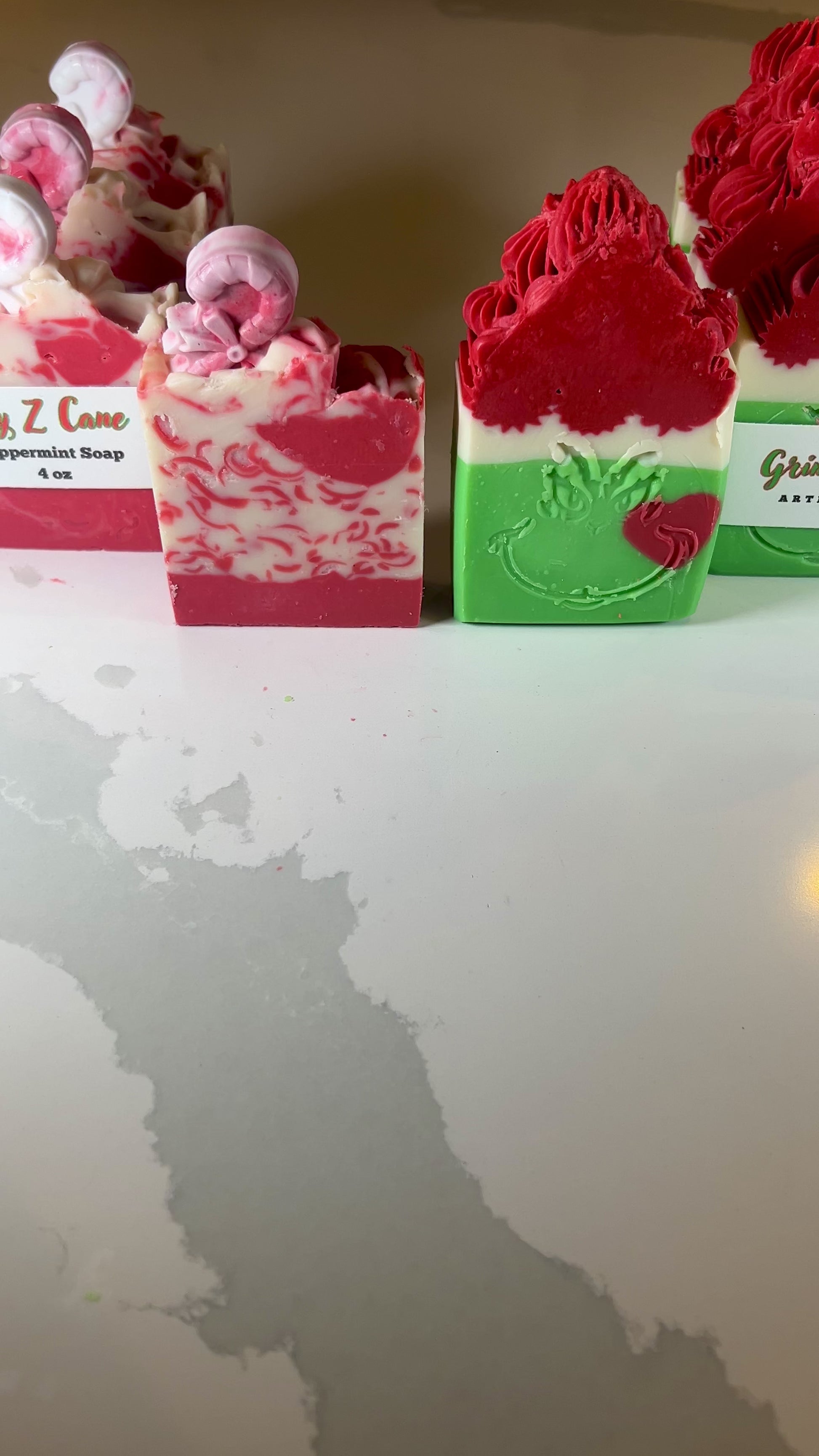 Introducing Key Z Cane Artisan Soap, a limited edition holiday treat for your skin. Infused with the refreshing scent of peppermint, each bar is topped with a mini candy cane for a playful touch. Indulge in the holiday spirit while nourishing your skin with this special soap.