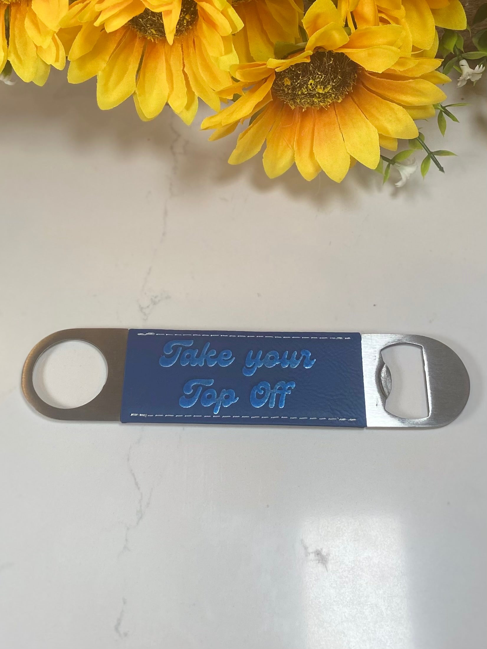Introducing our Leatherette Blue Bottle Opener - a sleek and stylish accessory that combines durability with ease of use. With its island-themed design and funny quotes, this bottle opener is a must-have for any gathering. Get yours today and add a touch of fun to your next party!