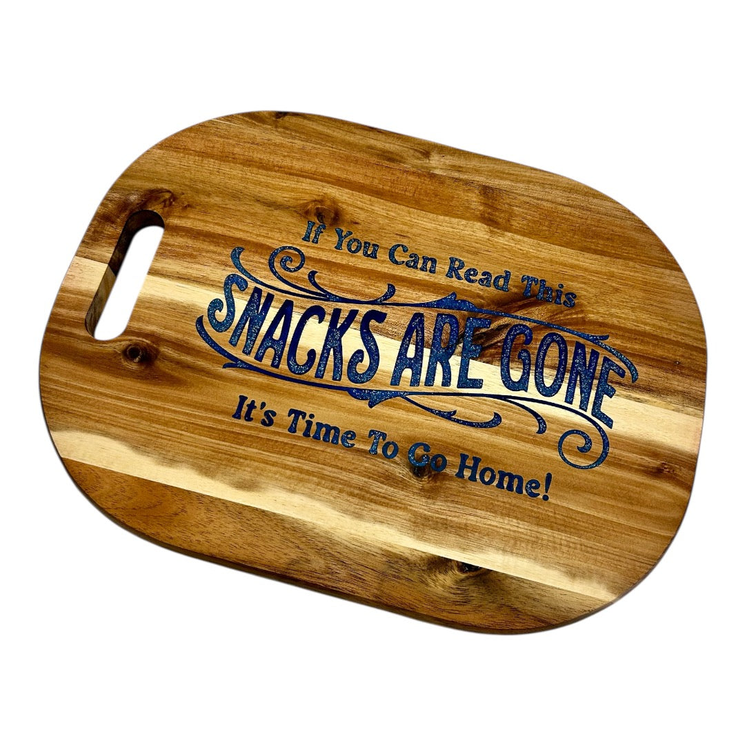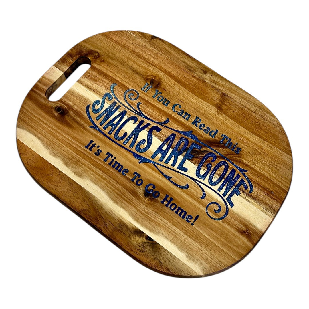 Add a playful touch to your gatherings with this "If you can read this, the snacks are gone, it's time to go home!" charcuterie board. Beautifully engraved and color-filled, it’s crafted to be food safe and perfect for serving your favorite treats with a side of humor.