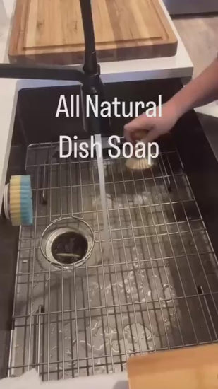 Introducing Tropical Storm All Natural Dish Soap! Made with peppermint and lavender essential oils, this dish soap is not only effective but also environmentally friendly with no plastic bottles. Plus, it comes with a bamboo brush and ramekin and has refill options. Get the clean dishes you want without harming the planet (or your wallet)!